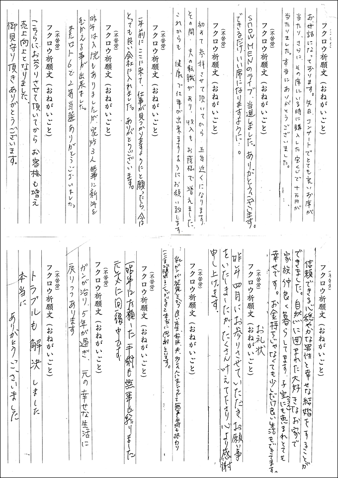 以下、祈願文に書かれていた金運に恵まれた方の御礼文を中心に統計的に掲載いたします。