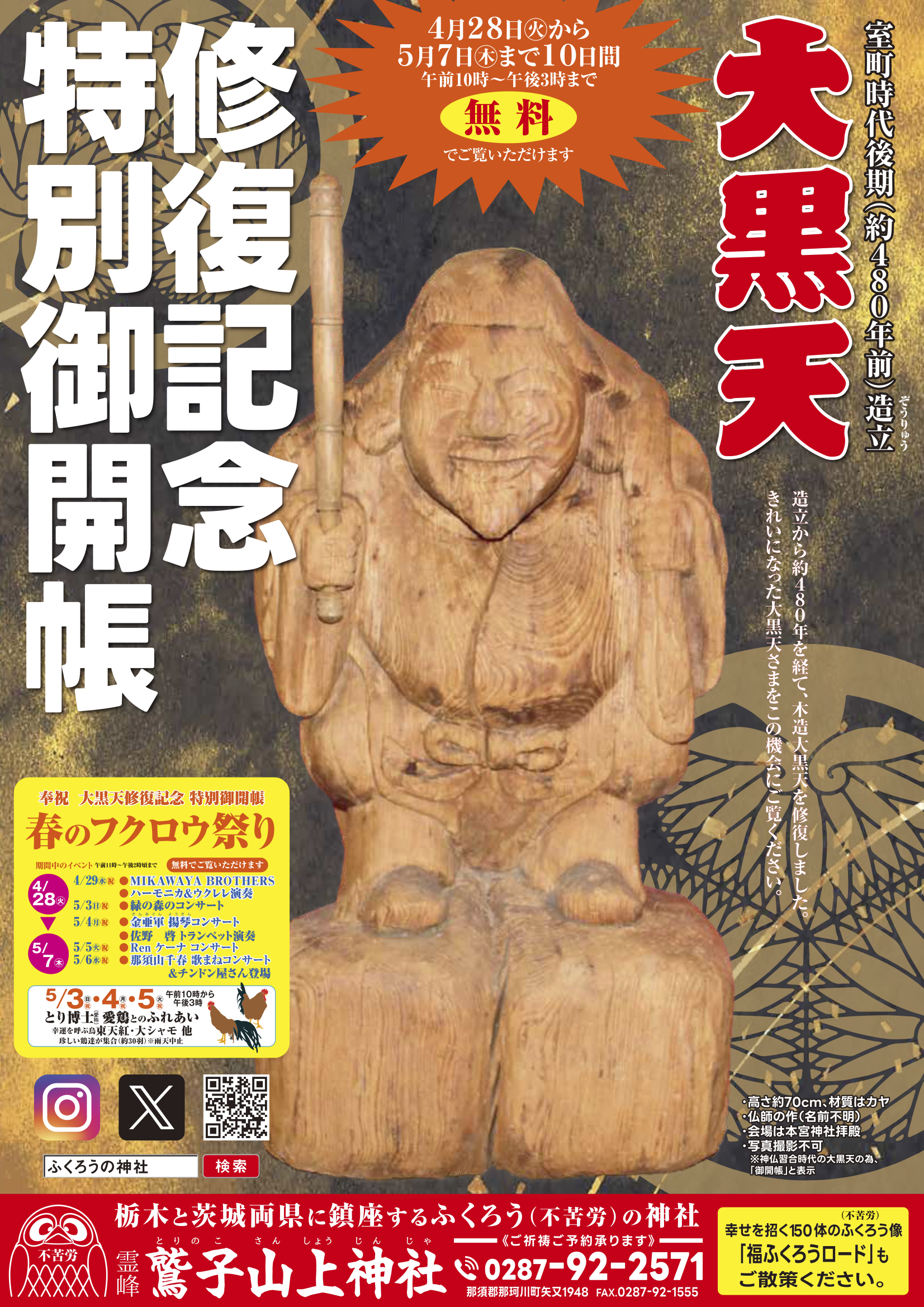 (拝観無料) 御開帳期間:4月28日〜5月7日までの10日間(午前10時〜午後3時まで)